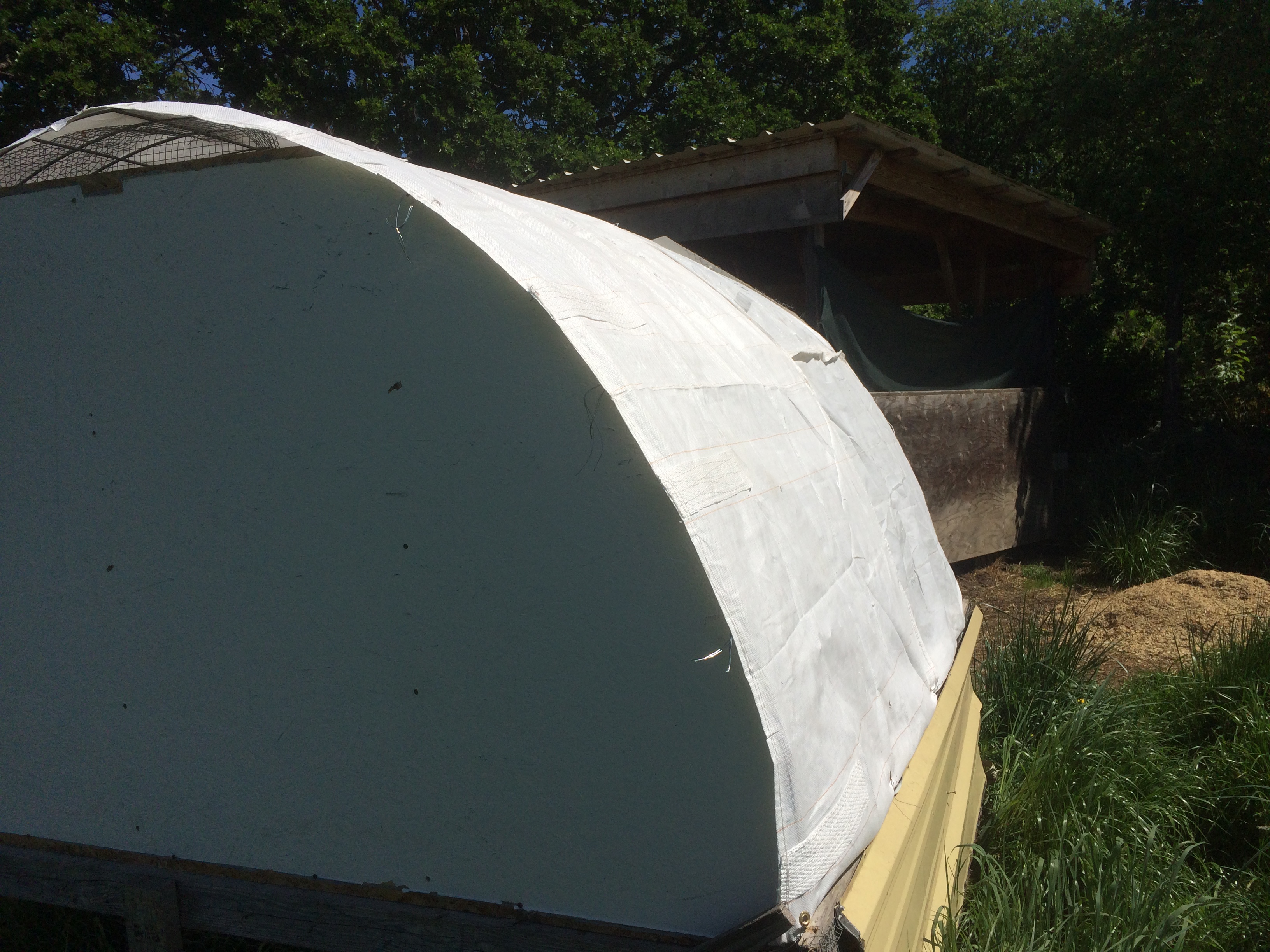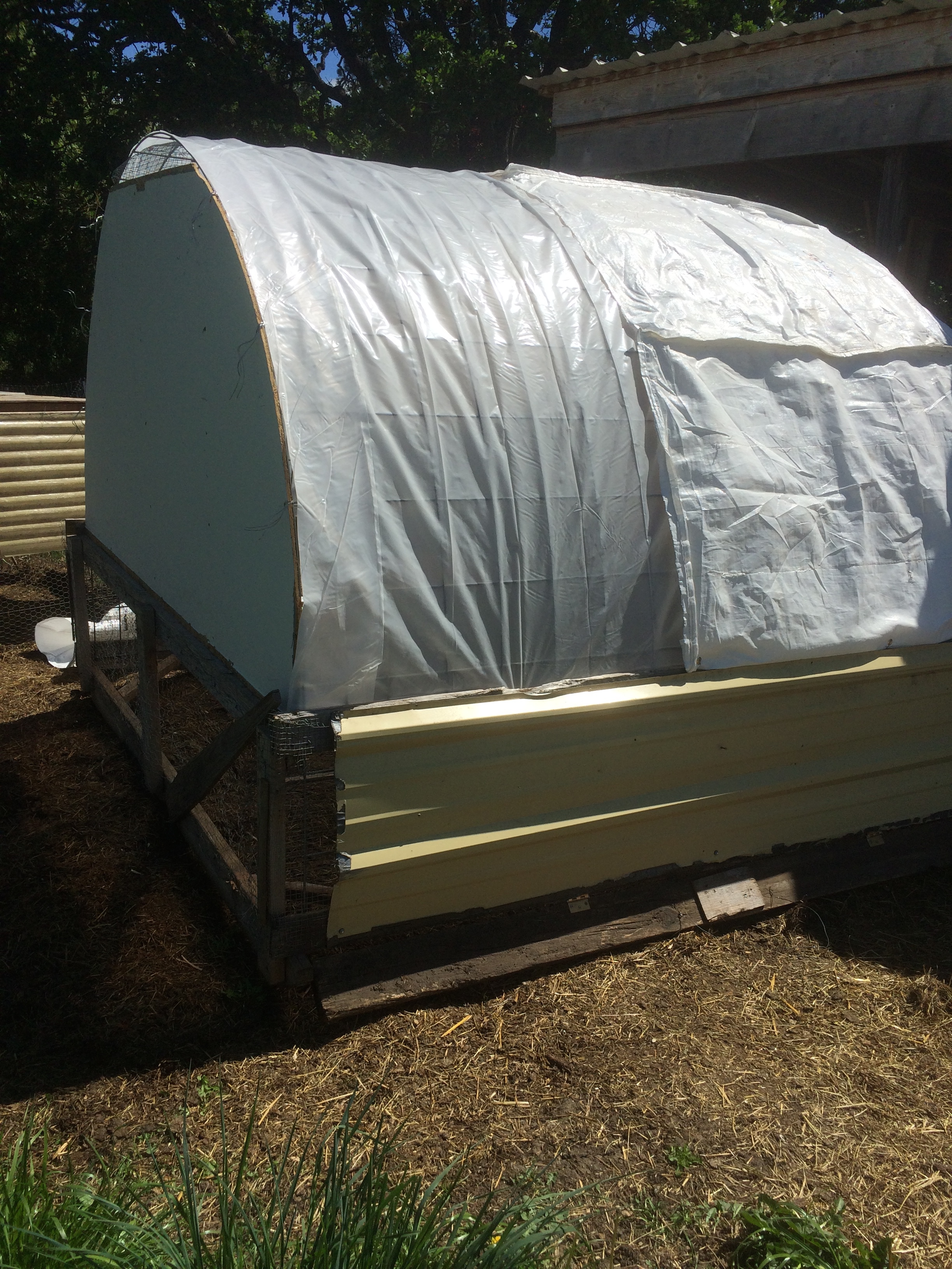 Now I realize that this is pretty close to what we were previously using. But they meet many of the criteria (including lasting a lot longer then the tarps we used previously) and most importantly we are taking potential garbage and giving it a second life (I would rather use it on a chicken house then send it to the landfill). But best of all it’s free.